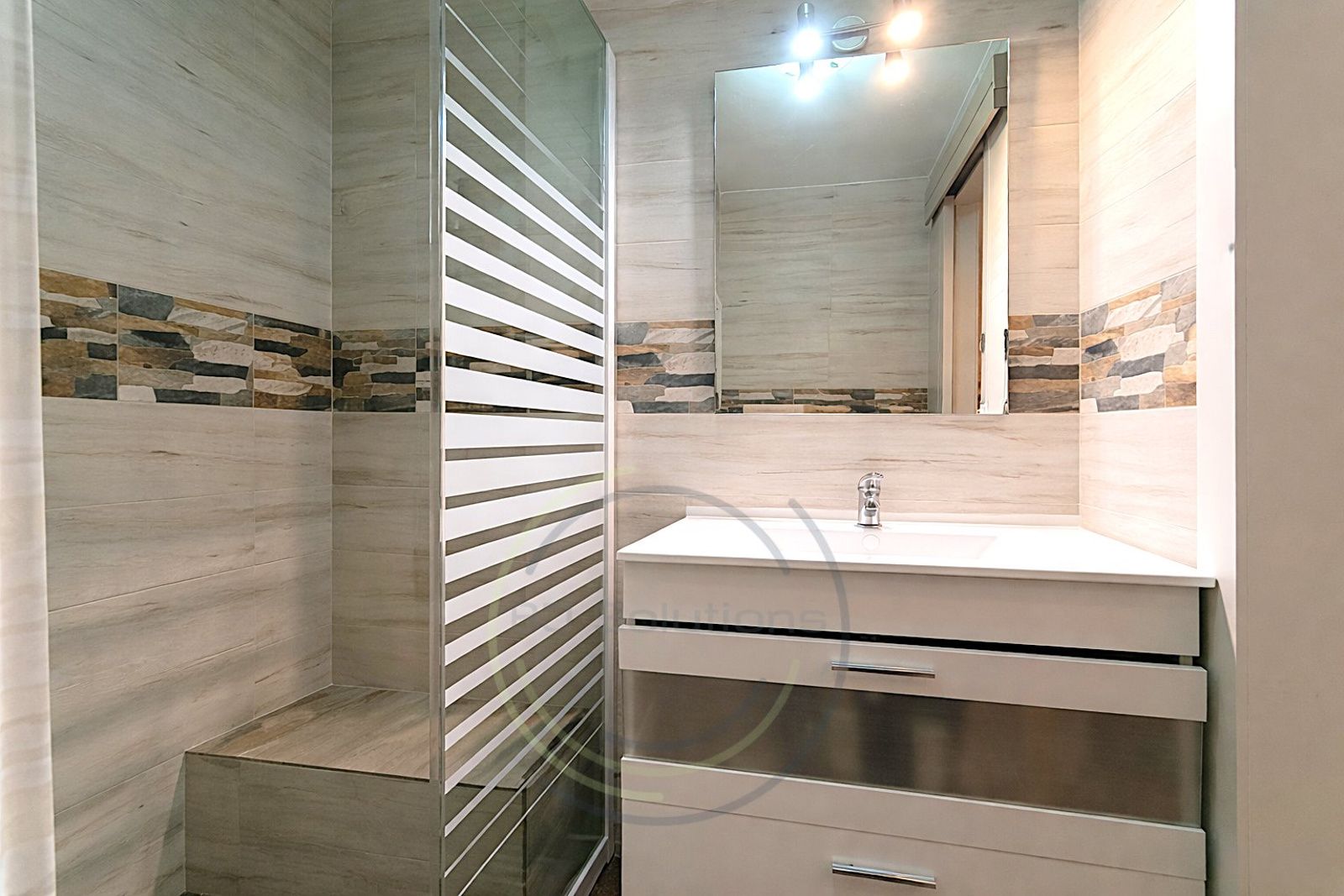 Modern bathroom with a large shower tray. A practical and comfortable space.